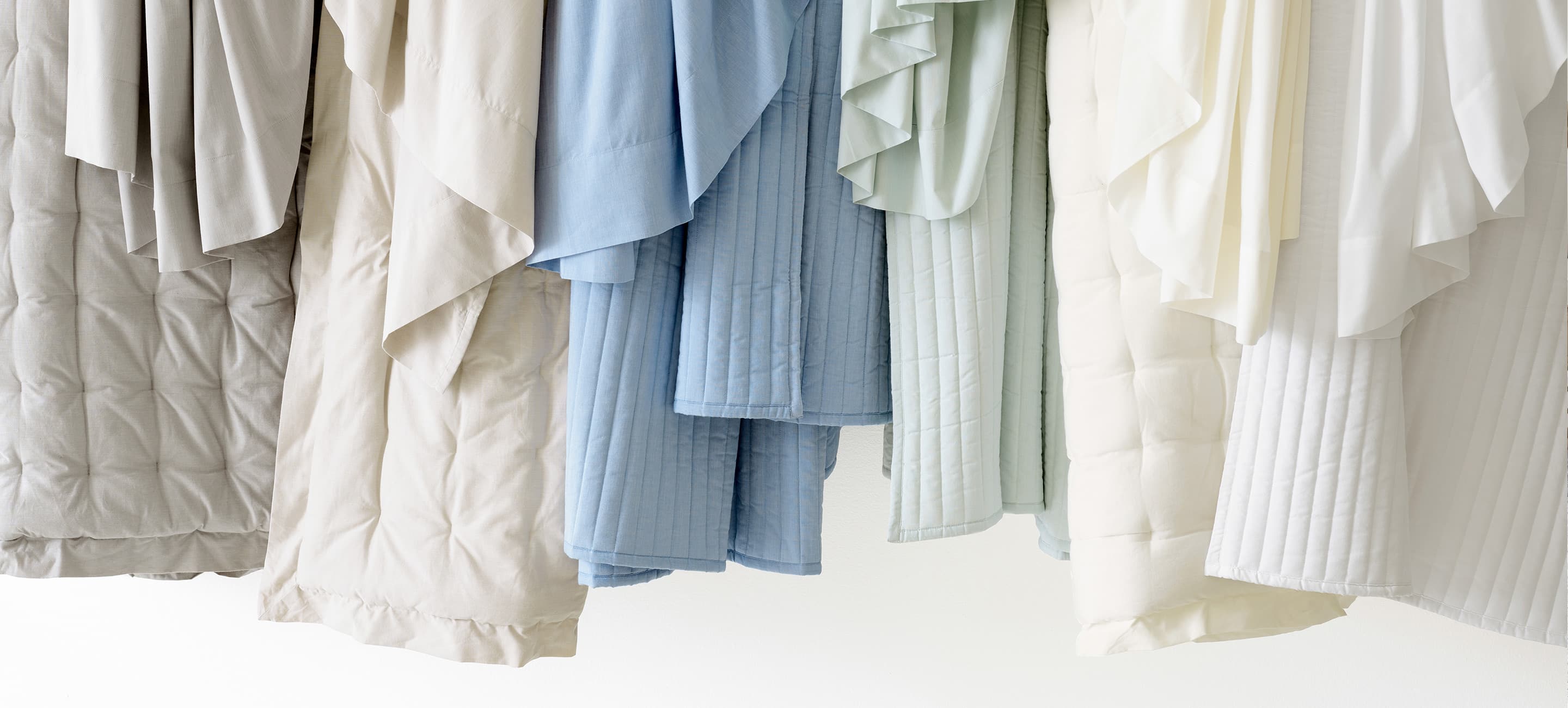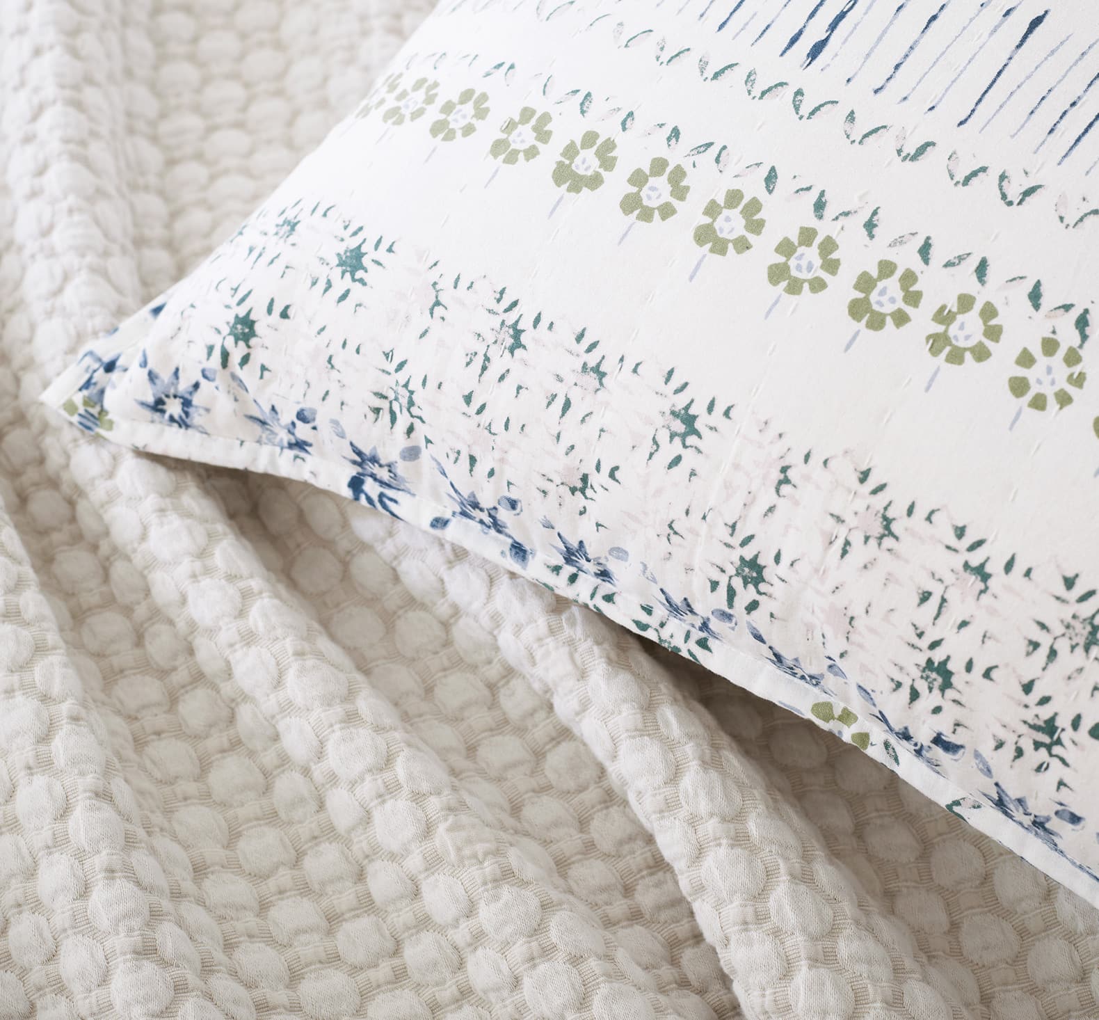 Our sustainably sourced bedding collection is available in sheets, quilts and shams.