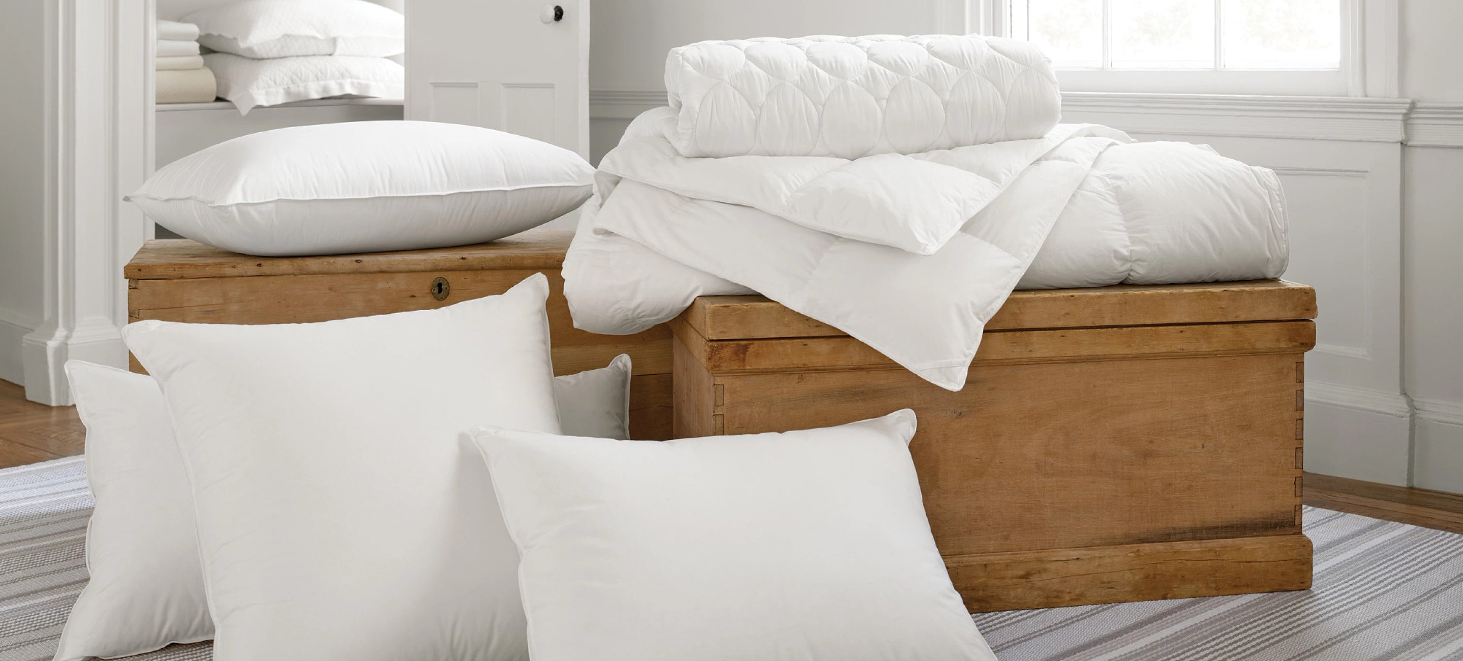 Build a dream-like bed with luxurious basics. Think cloud-like mattress pads, lofty duvets, hypoallergenic pillows, and more.