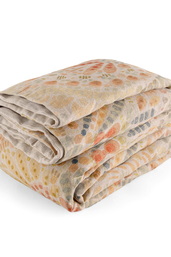 Discover rustic charm reimagined with the Alma Duvet Cover. Crafted from 100% linen and digitally printed with an artisanal graphic pattern, it brings a relaxed yet curated feel to your bedroom. Iron-safe and breathable, it’s ideal for year-round layering.