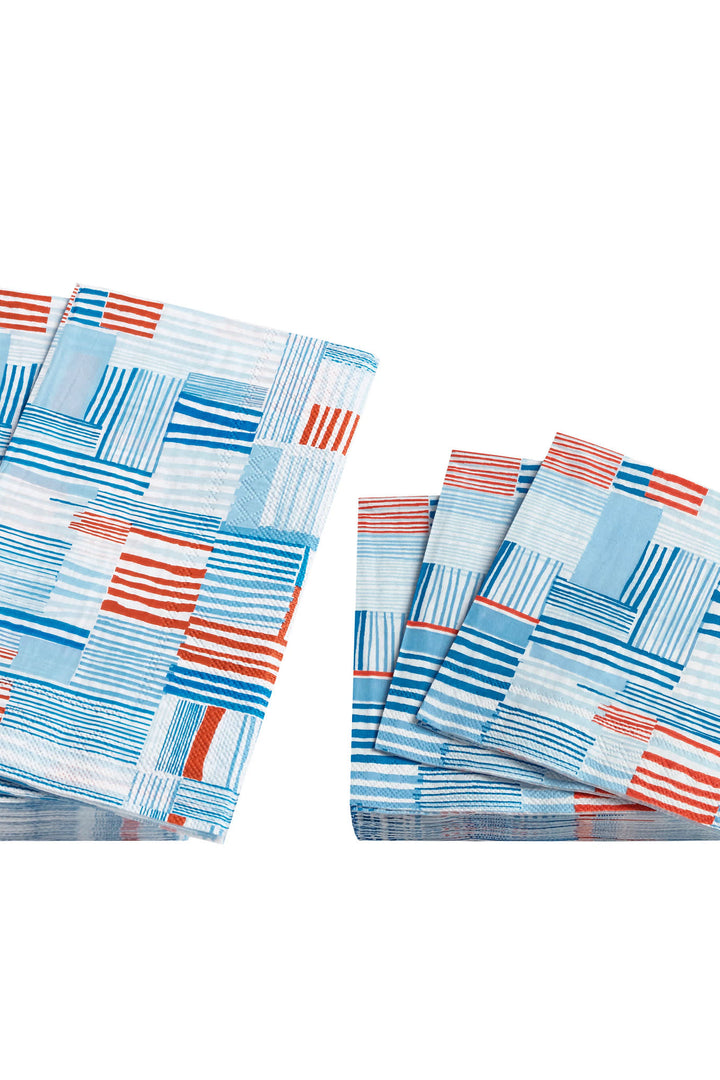 Add some razzamatazz to your gatherings with hand-drawn, irregular blocks of bold, saturated color. These handy, eco-friendly, single-use napkins feature bright, painterly stripes that mambo together in playful choreography. Thoughtfully designed to elevate any occasion, in two sizes. Cocktail sized for drinks and small handheld bites, and guest towels for coordinating style to your powder room. Manufactured and printed in Germany using environmentally-conscious raw materials and food-safe inks, which ensures they are both biodegradable and compostable.
