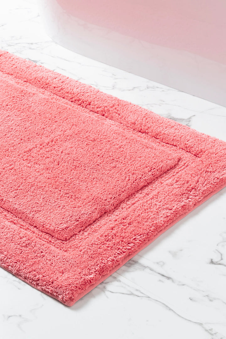 Beautify the bath with this classic, plush, absorbent and luxurious essential offered in a range of fresh and happy colors. Cloud-like softness as you step out of the shower comes from a dense, soft and substantial long-staple cotton. This bath rug has a superbly high pile offset by a woven decorative border.