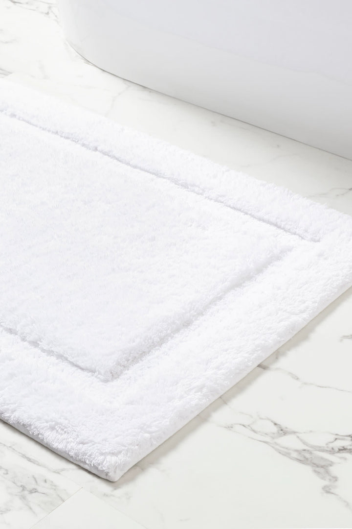Beautify the bath with this classic, plush, absorbent and luxurious essential offered in a range of fresh and happy colors. Cloud-like softness as you step out of the shower comes from a dense, soft and substantial long-staple cotton. This bath rug has a superbly high pile offset by a woven decorative border.