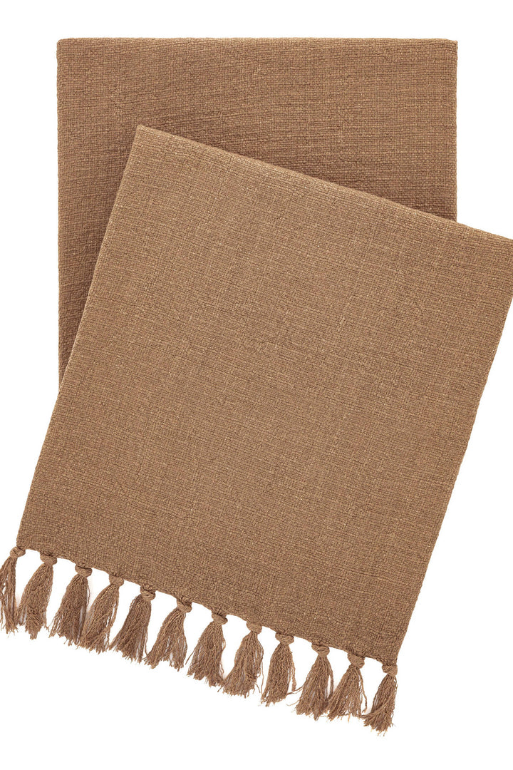 Dimension, drape, and earthy charm combine in this substantial and supple linen throw. With rich fluidity and texture, hand-woven on traditional looms and dyed in a saturated palette of neutral shades, it will bring a welcoming warmth to a bed or sofa. Designed for us by Marie Flanigan, an award-winning interior designer and principal of Marie Flanigan Interiors, to reflect her signature style of timeless elegance and innovative simplicity.