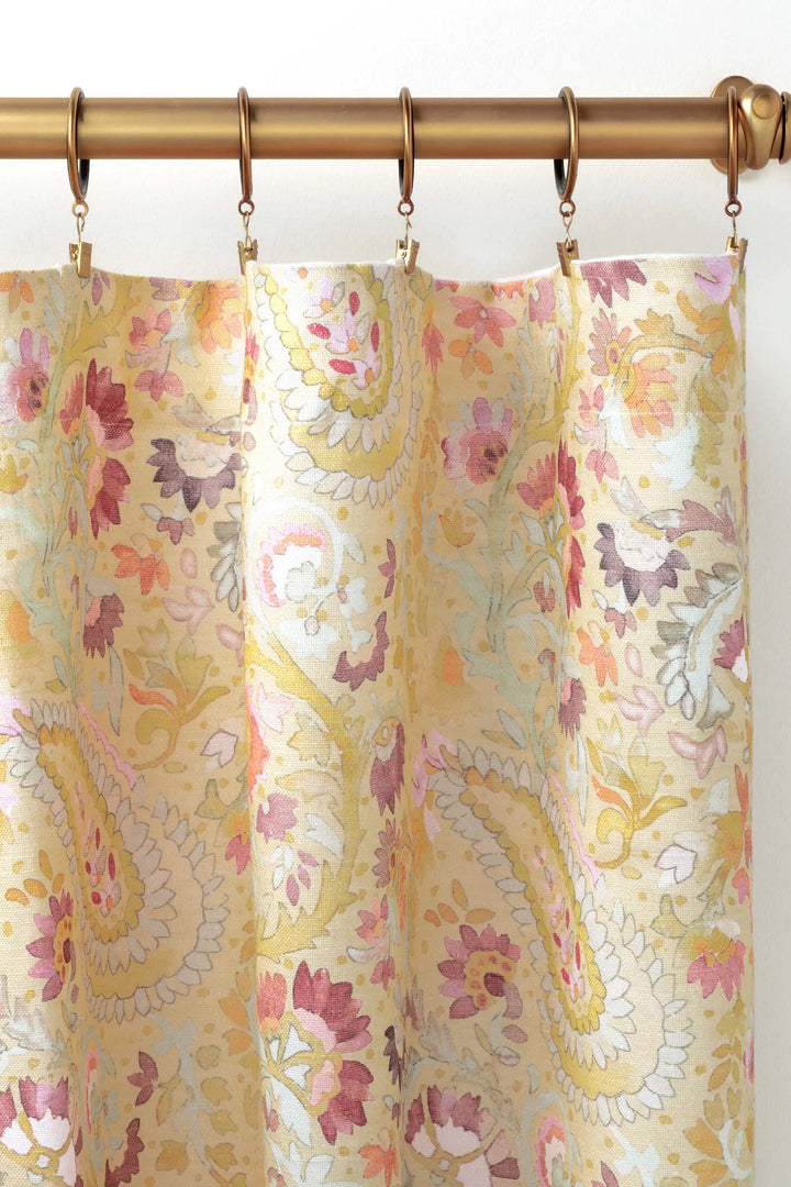 Wake up to the colors of an ocean breeze and slip into the new day feeling refreshed and relaxed with our Ines Blue curtains. The rhythmic and lyrical paisleys, florals and foliage dance together in washes of blue, indigo and charcoal are digitally printed onto our best selling, thick luxurious, rustic linen to capture all the beauty and nuance of the pretty artful watercolor rendering, then washed and tumbled to sublime soft perfection. What is not to love about Ines Blue? Comes readily sewn with rod pocket and loops for easy installation and a casually effortless ethos, or converts to ring-top style with curtain loop rings and drapery hooks available separately.