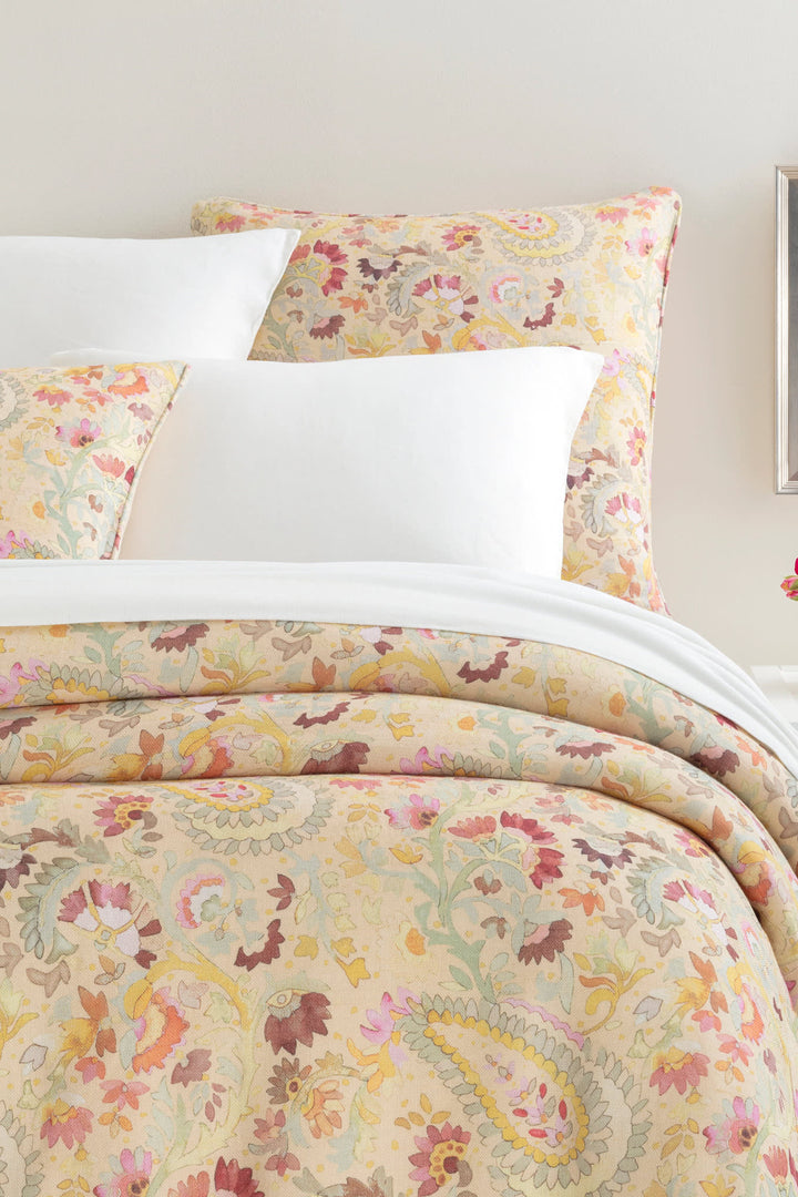 Ines Blue is easy to love; the rhythmic and lyrical paisleys, florals and foliage dance together in washes of blue, indigo and charcoal on a rustic laundered linen ground. Washed and tumbled for sublime softness and drape. Wake up to the colors of an ocean breeze and slip into the new day feeling refreshed and relaxed.