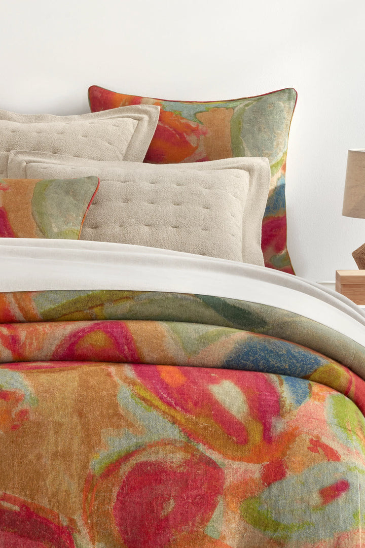 Sweet dreams are only a duvet away. Colorful and abstract, this gorgeous print was inspired by a paper vintage dress our designers discovered at the famous Brimfield Antique Market in Massachusetts. Expertly constructed of 100% natural linen, this duvet is the perfect weight and warmth for all seasons.