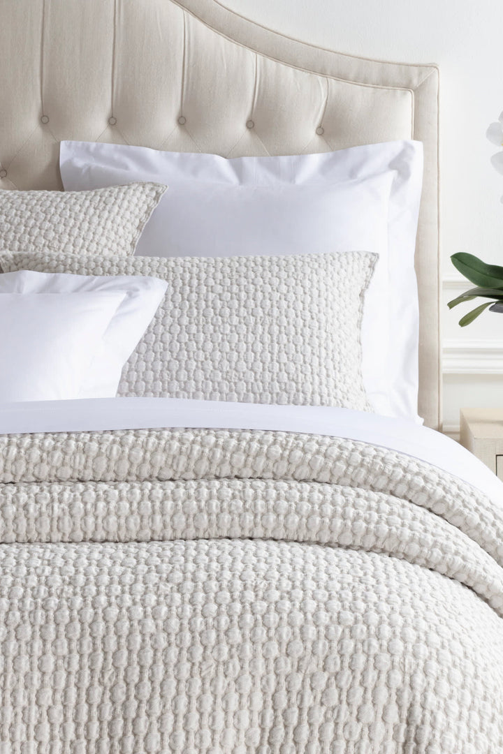 Understated but never underwhelming, our Lodi Matelassé Coverlet delivers irresistible texture and a warm, luxurious feel. Crafted on a jacquard loom, its unique matelassé weave mimics the look of quilting by blending two fabrics into one. The result? A substantial cotton layer that adds richness and depth to your bed, making it as cozy as it is elegant.