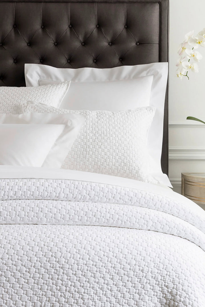 Understated but never underwhelming, our Lodi Matelassé Coverlet delivers irresistible texture and a warm, luxurious feel. Crafted on a jacquard loom, its unique matelassé weave mimics the look of quilting by blending two fabrics into one. The result? A substantial cotton layer that adds richness and depth to your bed, making it as cozy as it is elegant.