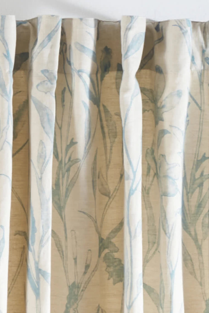 The Margo Linen Pewter Blue Curtain Panel features a stunning, linen-like texture with a soft, watercolor-inspired design. Crafted from a blend of European flax linen and soft cotton, this lightweight panel adds an airy, elegant touch to any room while softly filtering light for a serene atmosphere. Perfect for creating a peaceful, stylish space.