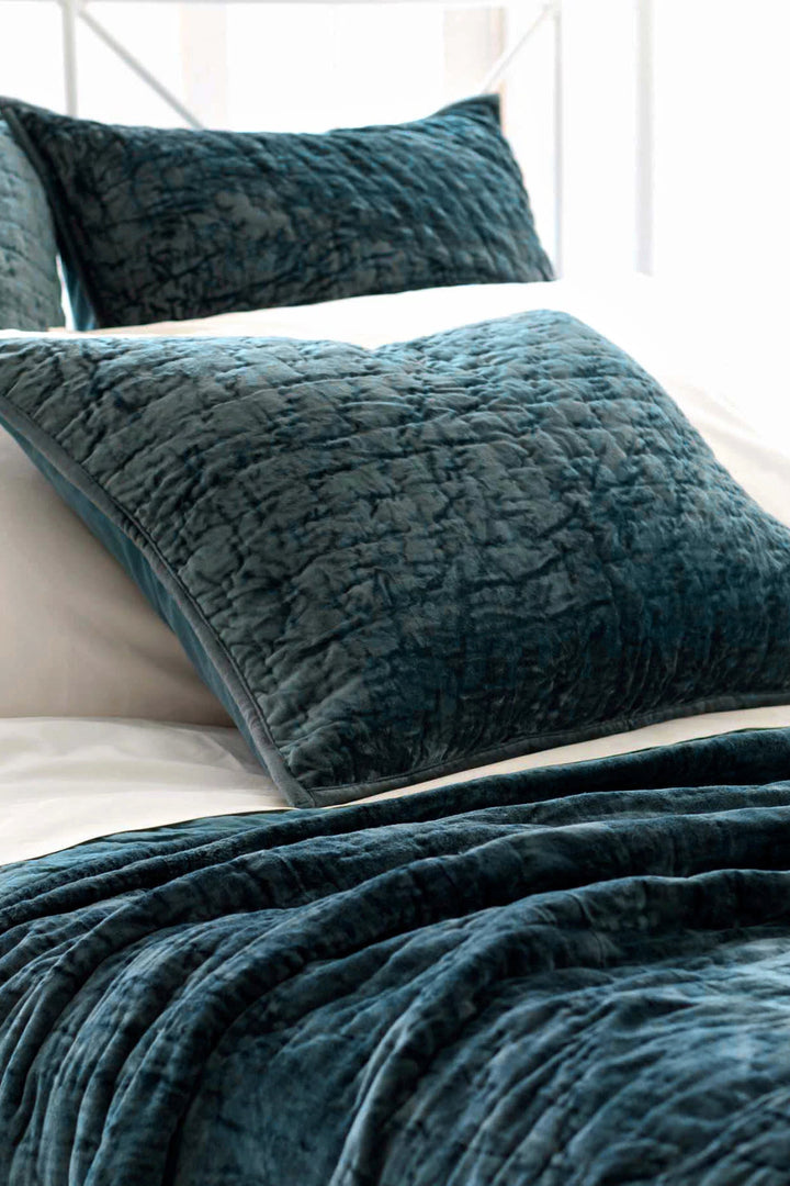 A fusion of viscose and cotton in an unbelievably soft velvet sham. Decorative piping, tieback closure.