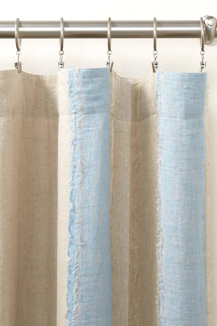 Part of our collaboration with Kit Kemp. An eyelash fringe adds visual and textural interest to this striped curtain panel expertly woven with the finest linen.