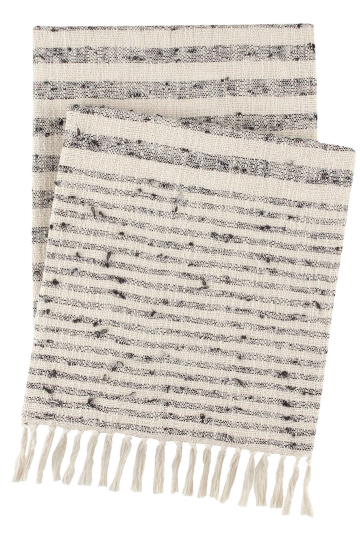 Our cozy and versatile Northville Throw features linen-like chambray stripes and a stylish fringe woven from durable yet soft performance fibers. Fade and water-resistant, it can be used indoors or out.