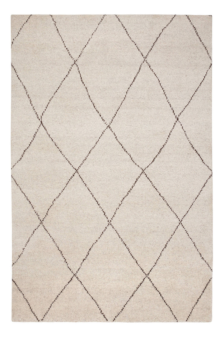 Large-scale diamonds, stark and black, quiver across the soft Ivory ground of this divine wool rug as if hand-drawn. With a sophisticated, subtle geometry that is densely hand knotted and shorn to lush, plush perfection, this rug exudes maximum comfort and understated modern style.
