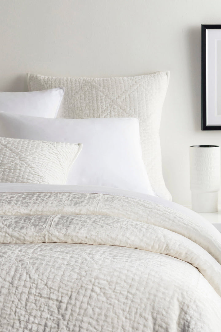 Love at first touch, you will melt at the hand feel of this sublimely soft-to-the-skin scrumptious quilt. Relaxed and inviting, double diamond Kantha quilted cotton velvet. Layer on the romance, with velvet for every season.