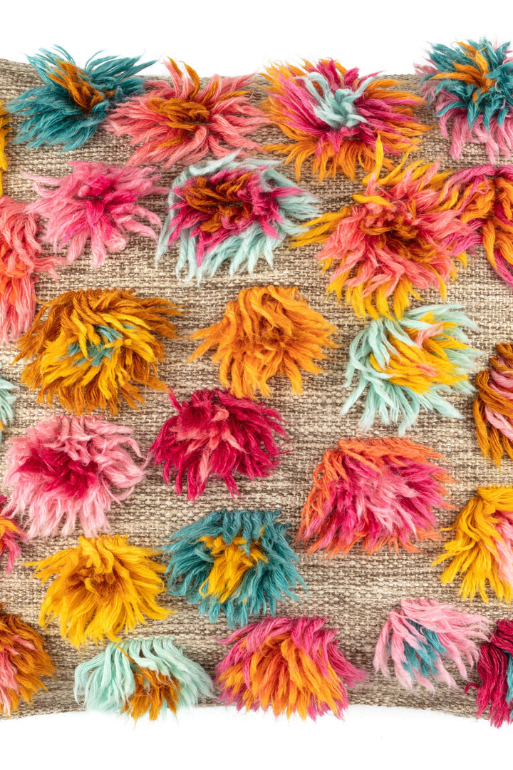 This exuberant natural wool pillow explodes with shag-tufted blooms of Ivory, Espresso, Taupe, and Beige on a raw, undyed, and marled ground. A wonder of texture and neutral hues, it's guaranteed to bring the house down!