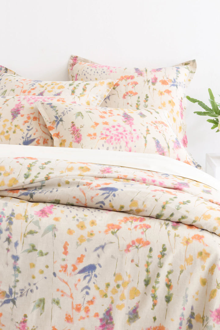 Bring the beauty of a wildflower garden right into your bedroom with our Pressed Flowers Duvet Cover. Inspired by a one-of-a-kind watercolor painting, this duvet features colorful blooms on a natural cotton-linen fabric that offers the breezy look of linen with the easy-care comfort of cotton. Pretty, playful, and full of personality—this duvet is your ticket to a dreamy, floral-inspired retreat.