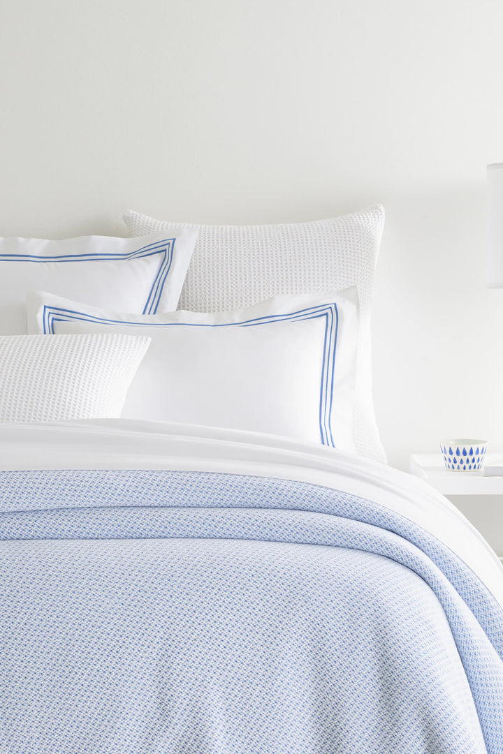 This softly textured cotton knit throw in French blue and white offers the perfect amount of coziness and pattern for any room. Pair it with other pieces from our C3 collection, such as storage bins, bath towels, and decorative pillows.