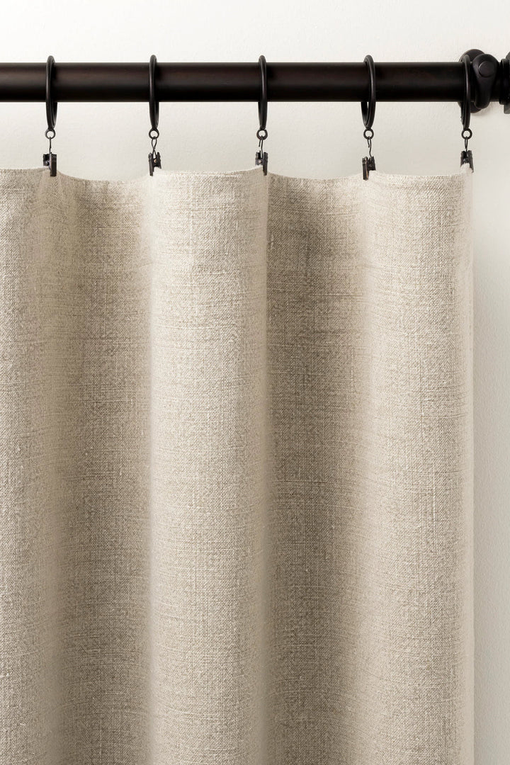 Are you ready for a refresh? These textured neutral linen curtain panels are sustainably crafted from unbleached laundered linen for a soft and sophisticatedly rustic look. Comes readily sewn with rod pockets and loops for easy installation and a casually effortless ethos, or converts to ring-top style with curtain loop rings and drapery hooks available separately.