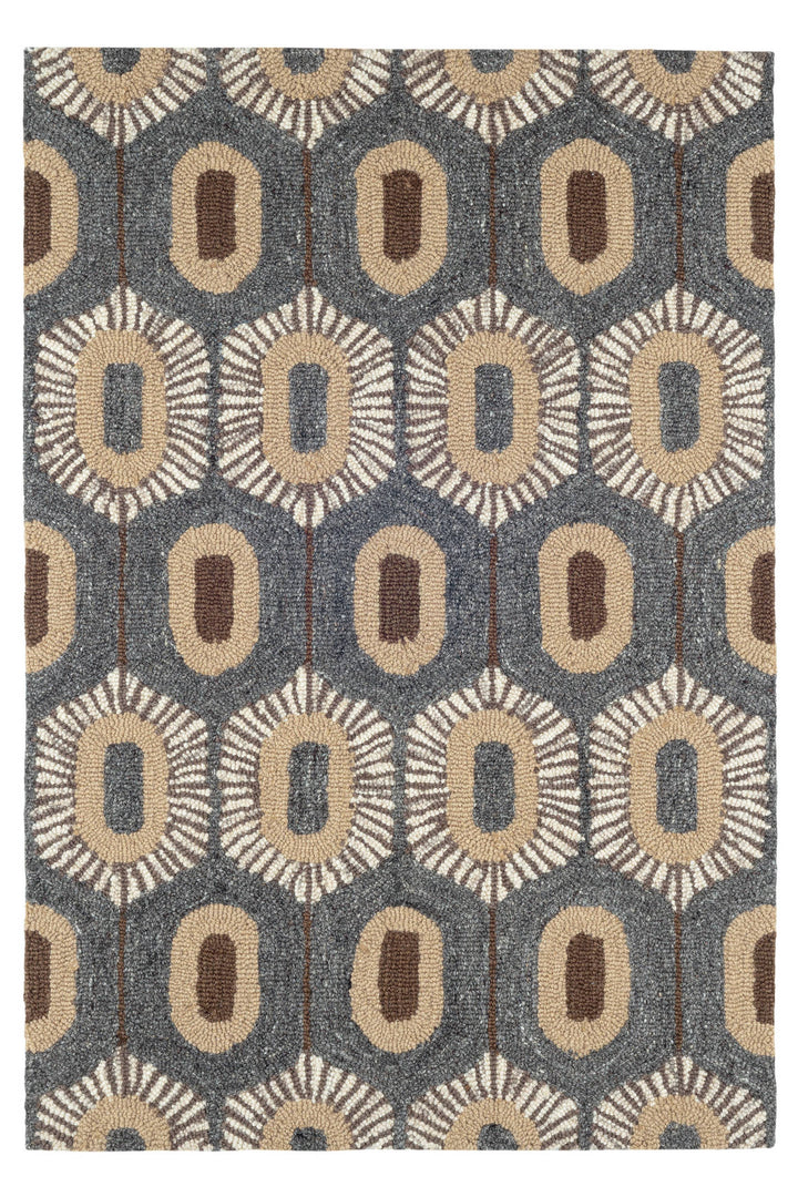 With contrasting neutral hues of Java, Sand, Ivory and natural, undyed marled Grey wool, dynamic textured motifs deliver a decorative yet modern element to this intricate design. Expertly handwoven in an extremely durable, low profile, micro-hooked structure from naturally warm and cozy wool, a durable, soil resistant, sustainable, biodegradable resource.