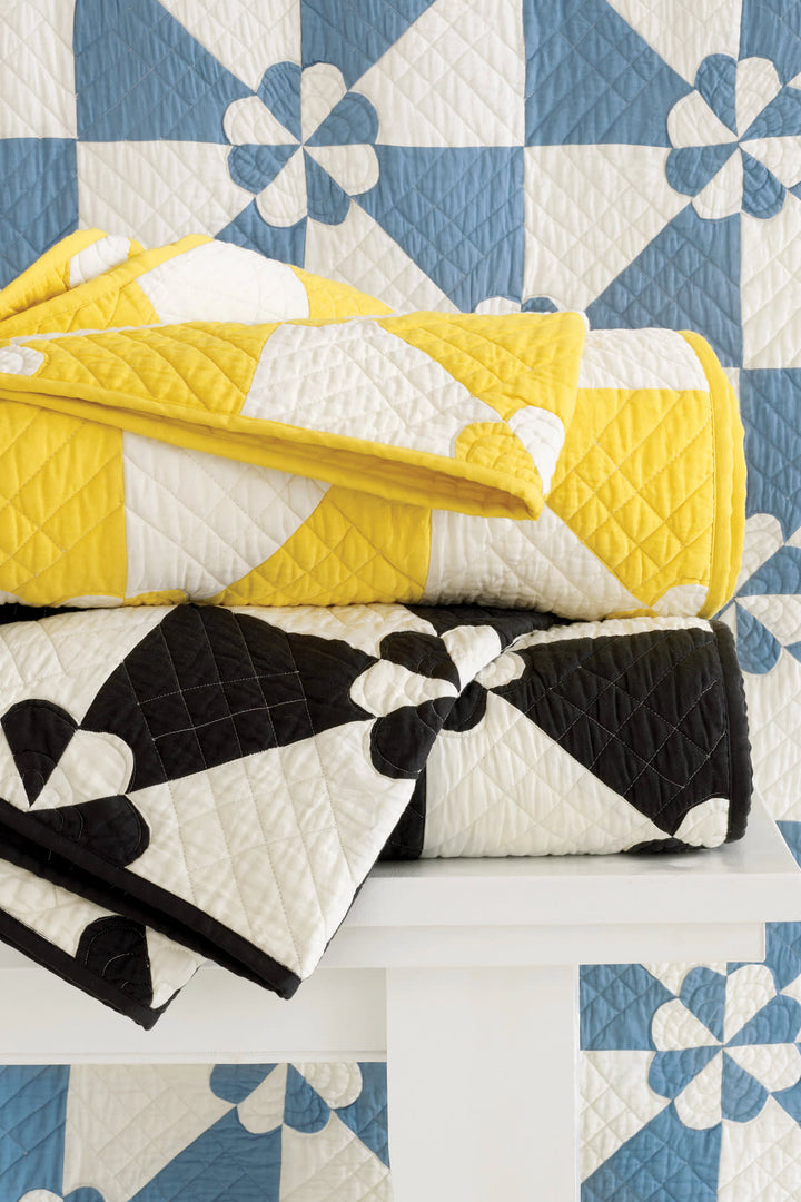 Inspired by an antique textile foraged at Brimfield flea market, we've given traditional a graphic twist. A lightweight patchwork of silky cotton sateen fabric shapes held together with traditional quilting diamonds and sweet petal stitched rosettes; this Modern Americana sham cover is sure to become a family heirloom.