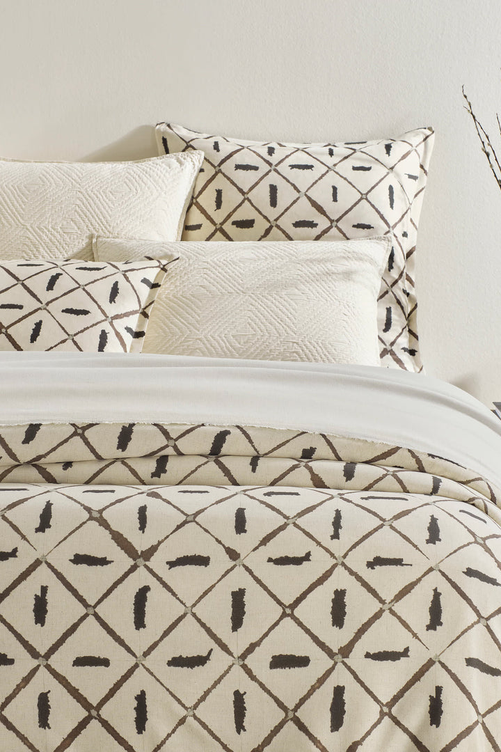 With the illusion of bespoke fabric, this large-scale lattice print duvet cover looks as if each line has been individually painted with a loaded inky black brush. The graphic ink blot lines are expertly reproduced on a blend of soft cotton and cool flax with a sophisticated linen-like texture.