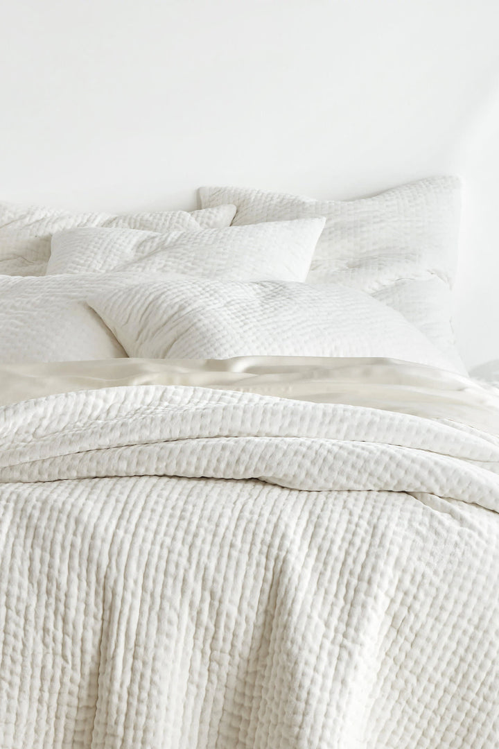 This supremely soft velvet quilt is made with classic pintuck stitching and extra batting to provide an additional layer of luxurious comfort. Guaranteed to keep you cozy and warm, even on the chilliest of nights. For a serene look, pair with the coordinating quilted shams.