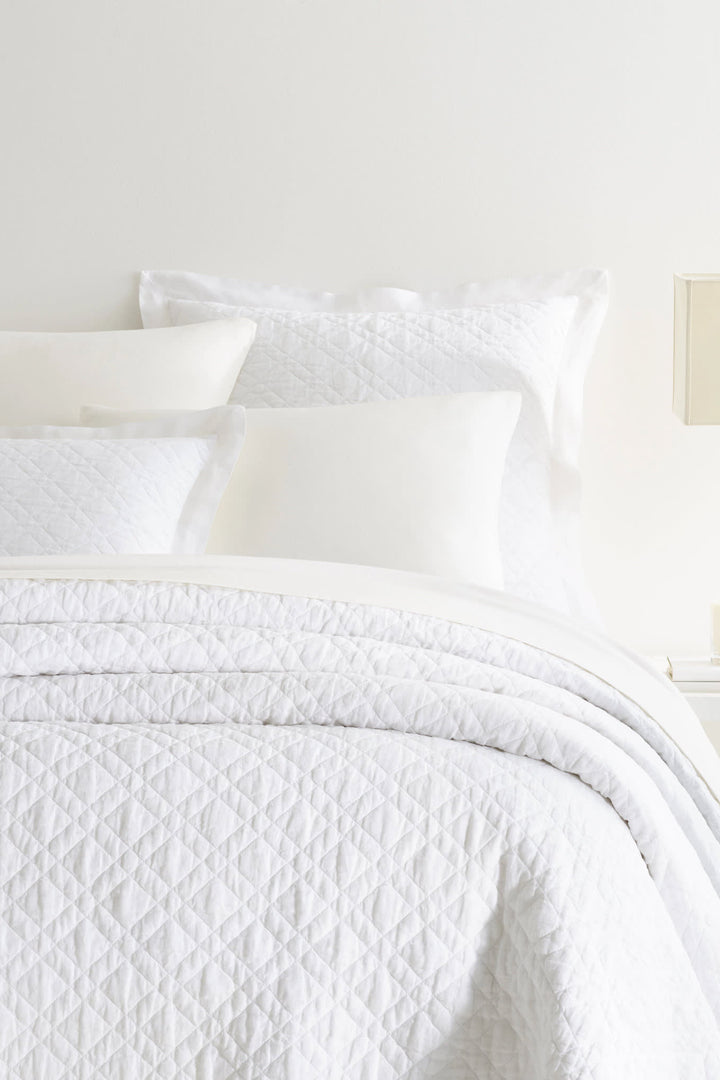 Capture linen's timeless appeal with this casually elegant take on the classic quilt. Marled linen and a thin layer of batting add up to the perfect extra layer for transitional spring nights. Traditional diamond quilting stitch keeps it all together. Laundered linen quilt is washed and tumbled to soft perfection for a relaxed, lived-in look.