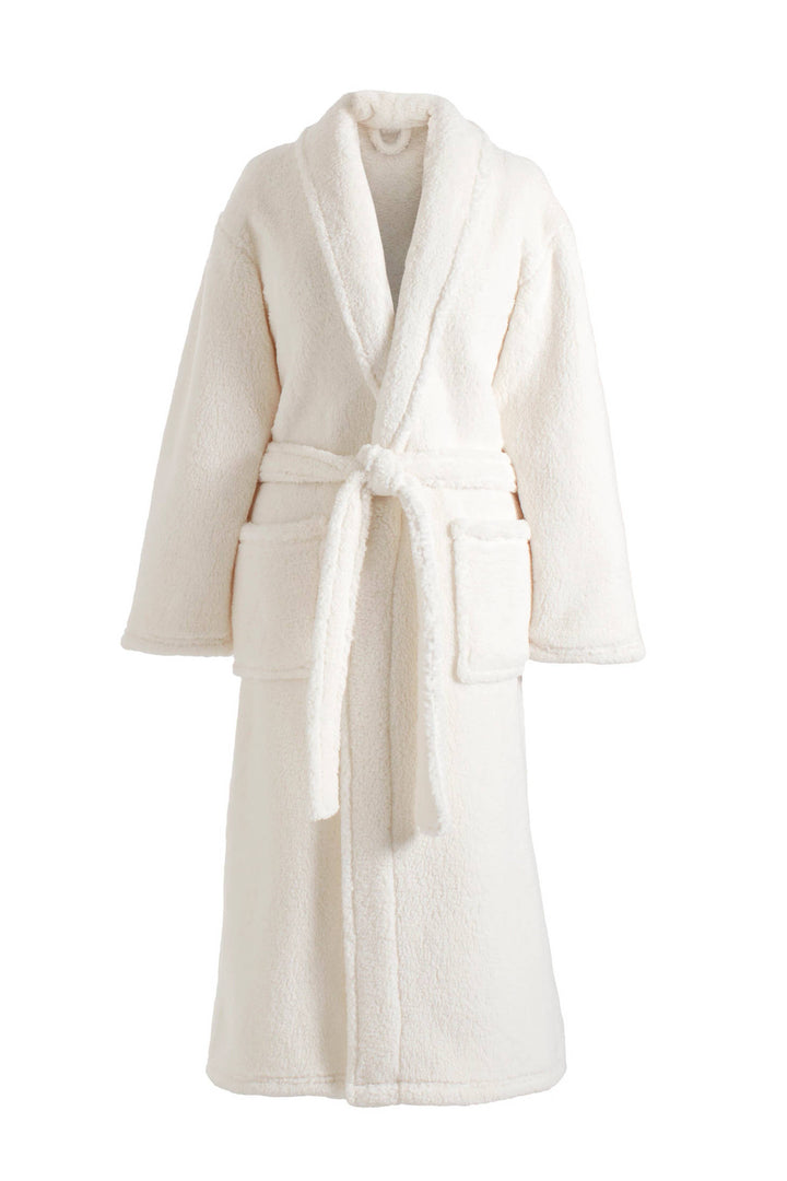 Make every day a spa day with this luxurious robe. Wonderfully plush and oh-so warm, it’s available in a lovely natural ivory color. This beauty boasts a similar construction to our bestselling Sheepy Fleece 2.0, but it’s even warmer and noticeably nubbier. Special details include a shawl collar, shirt hem, and generous patch pockets with an attached tie belt.