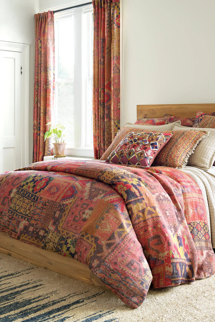 Add a pop of Eastern flair to any bed with this kilim-inspired linen sham. Featuring a colorful patchwork print in shades of java, brick, blue, and terra-cotta, this sham mixes effortlessly with our Laundered Cotton throws, Linen Mesh coordinates, and Anatolia decorative pillows and throw.<br><br> � 100% linen. <br> � Print on front, solid linen back.
