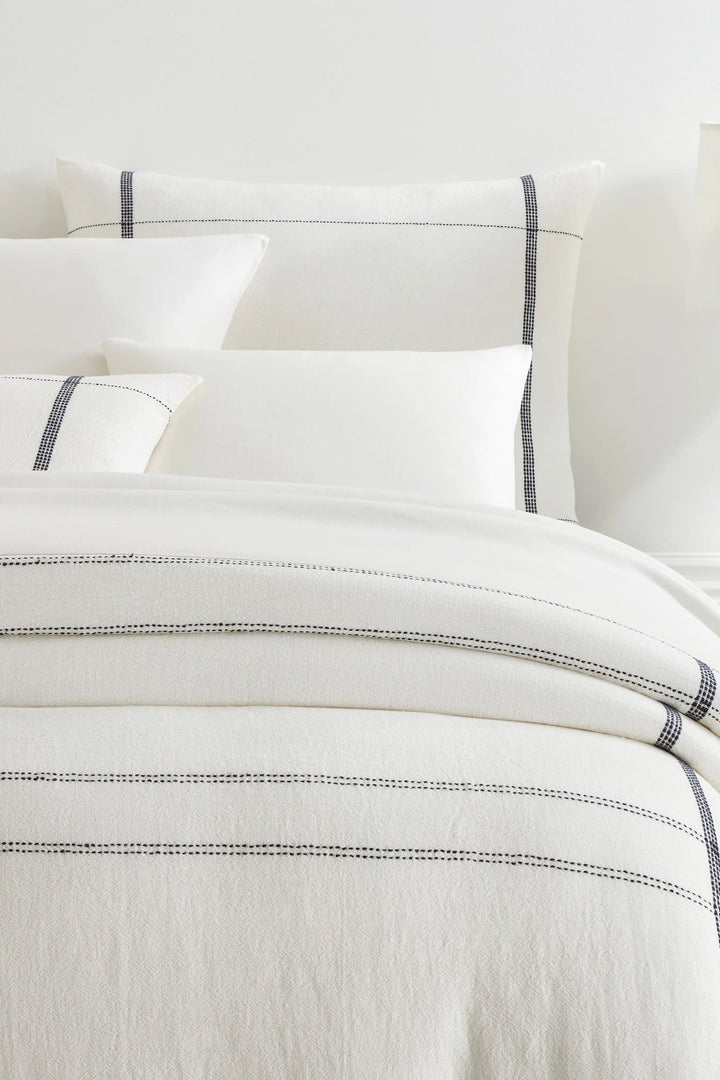 Inspired by antique, homespun grain sacks, the Atherton Duvet Cover boasts a large windowpane check that will add a modern farmhouse aesthetic to any decor. Subtly engineered to resemble hand stitching, the heirloom flaxen quality softens with every wash, with very little wrinkling, and is made to last a lifetime.