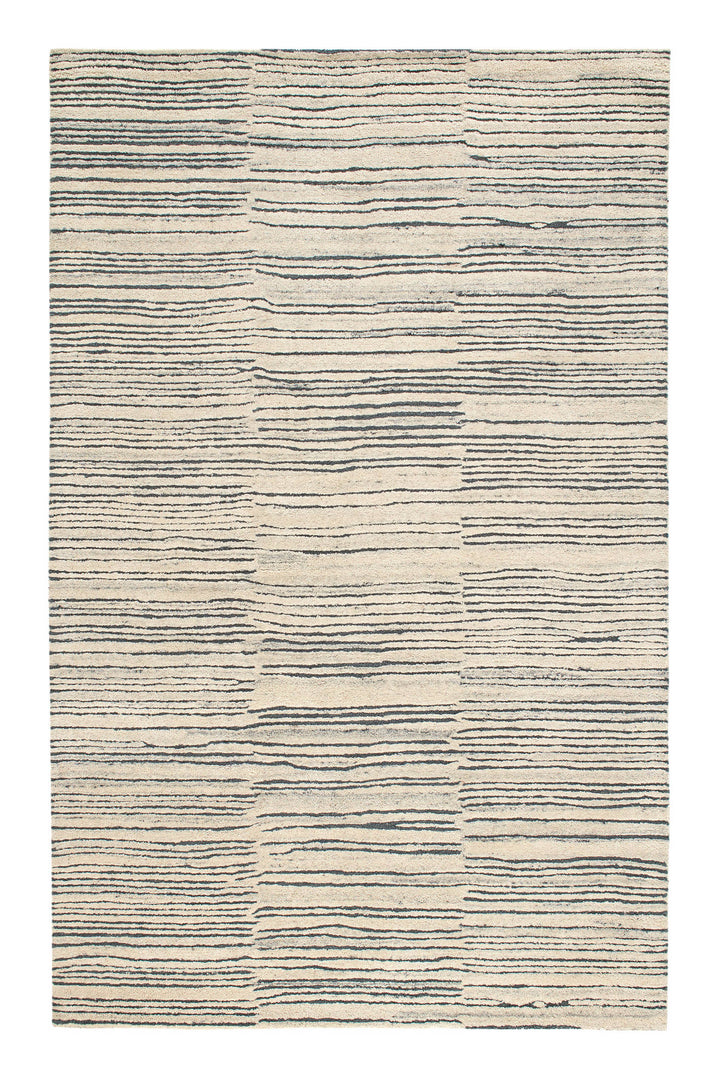 Inspired by substrate layers of sandstone sediments that chronicle the millennia, this luxurious, irregularly striped wool rug will stand the test of time. The subtle degradations of a natural undyed fleece pile enhance the finely observed irregular striping in a softly mineral palette. The subtle beauty of the higher sheared tufts emphasizes the contrast of the densely looped stripes. A signature motif of Marie Flanigan, an award-winning interior designer. This rug is a part of our design collaboration with Marie to produce a lifestyle collection that reflects her signature style of timeless elegance and innovative simplicity.
