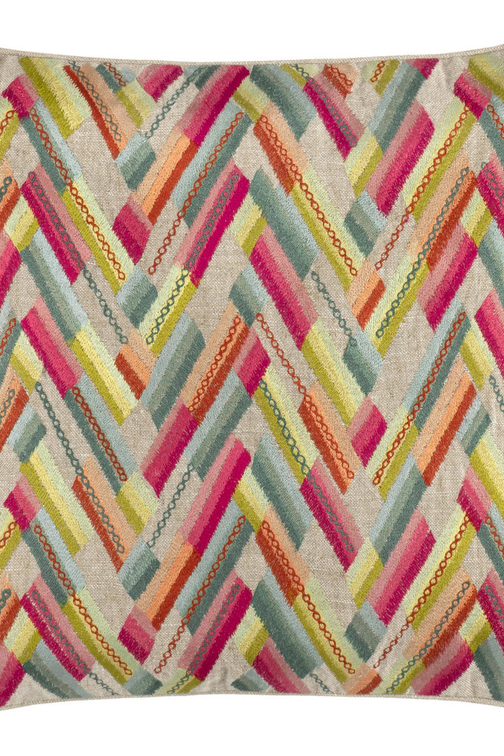 The dual-sided Azura Pillow is handwoven and artfully embroidered with a colorful chevron design. Crafted from a cotton and linen blend, coordinate it with our Azura Hand-Tufted Wool Rug to complete the look.
