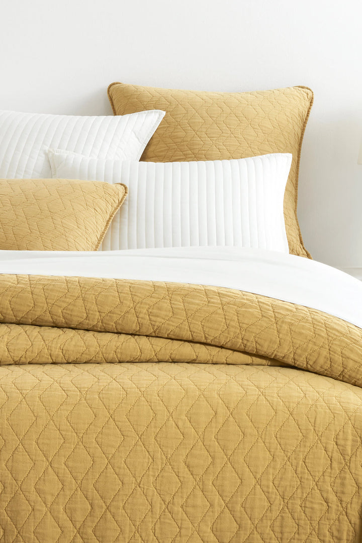 Cuddle up in this effortlessly relaxed coverlet, quilted in cotton for supreme softness and lived-in texture. A stitched geometric diamond detail lends visual interest and plenty of loft.