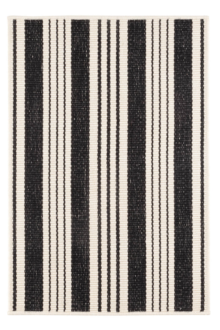 Get the best of both worlds with this durable, washable, and eco-friendly indoor/outdoor rug in a classic black and ivory stripe. Blends beautifully into both traditional and modern spaces.