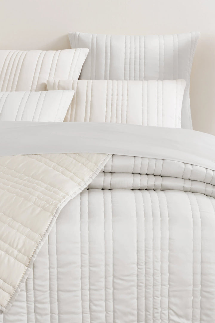 With a beautiful drape and silky soft hand feel, the fully reversible Blissful Bamboo Quilt is made of 100% viscose from bamboo in a luminous shade of ivory pearl on one side and silver on the other. A stylish and cozy bedroom upgrade, it gets softer with every wash and is warm yet breathable, perfect for hot sleepers. An eco-friendly choice, bamboo is a renewable and biodegradable resource grown without chemicals and with minimal water use.