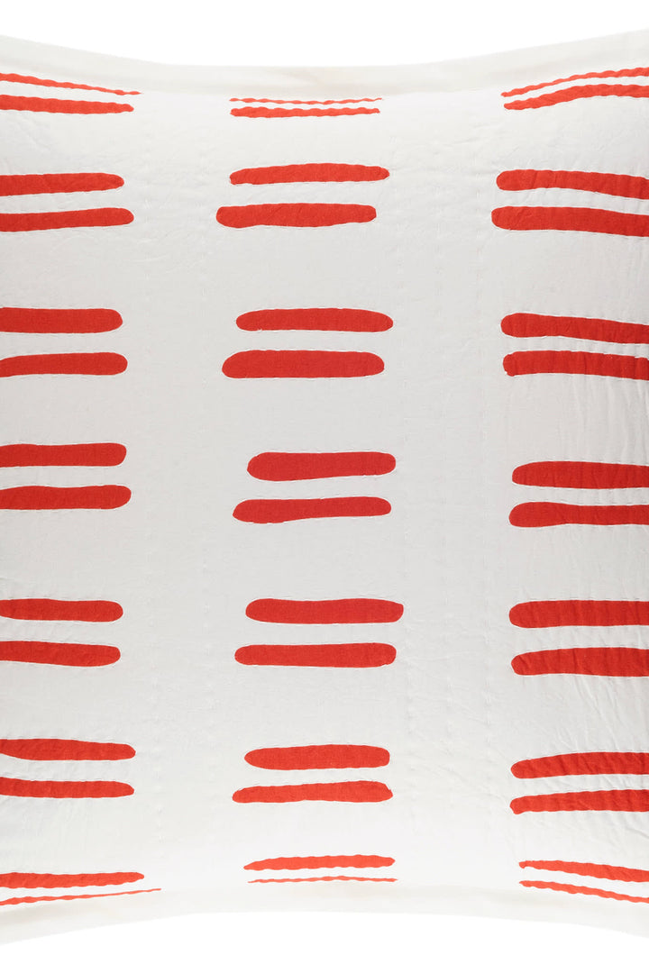 A modern twist on traditional, this Kantha stitched all-cotton quilted sham features dashes of bold color outlined with hand quilting for extra emphasis.