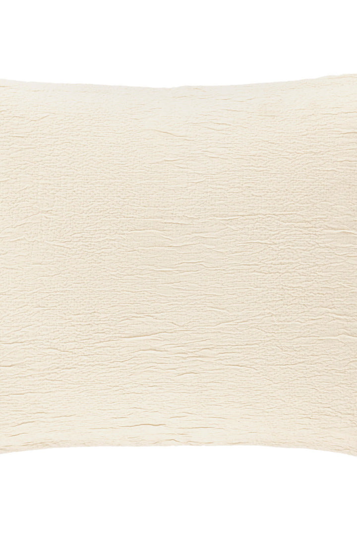 A lovely deconstructed, crinkle pattern matelassé duvet cover and sham add lashings of textural wabi-sabi to a sleek white bed when paired with tailored sheets, shams, and bed skirts. Woven from cool comfy cotton, stonewashed and tumbled to buttery soft laundered comfort.