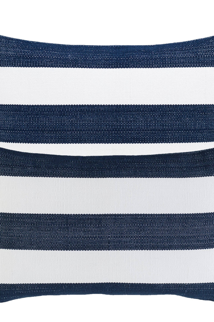 Coastal stripes speak of summer breezes and al fresco meals. These bold and graphic pillows are made from rugged canvas fabric woven from hydrophobic performance yarns. Quick drying after a sudden cloud burst, they won't fade in the sunshine or mildew in the shade. Easy to care for and enjoy for many seasons to come.