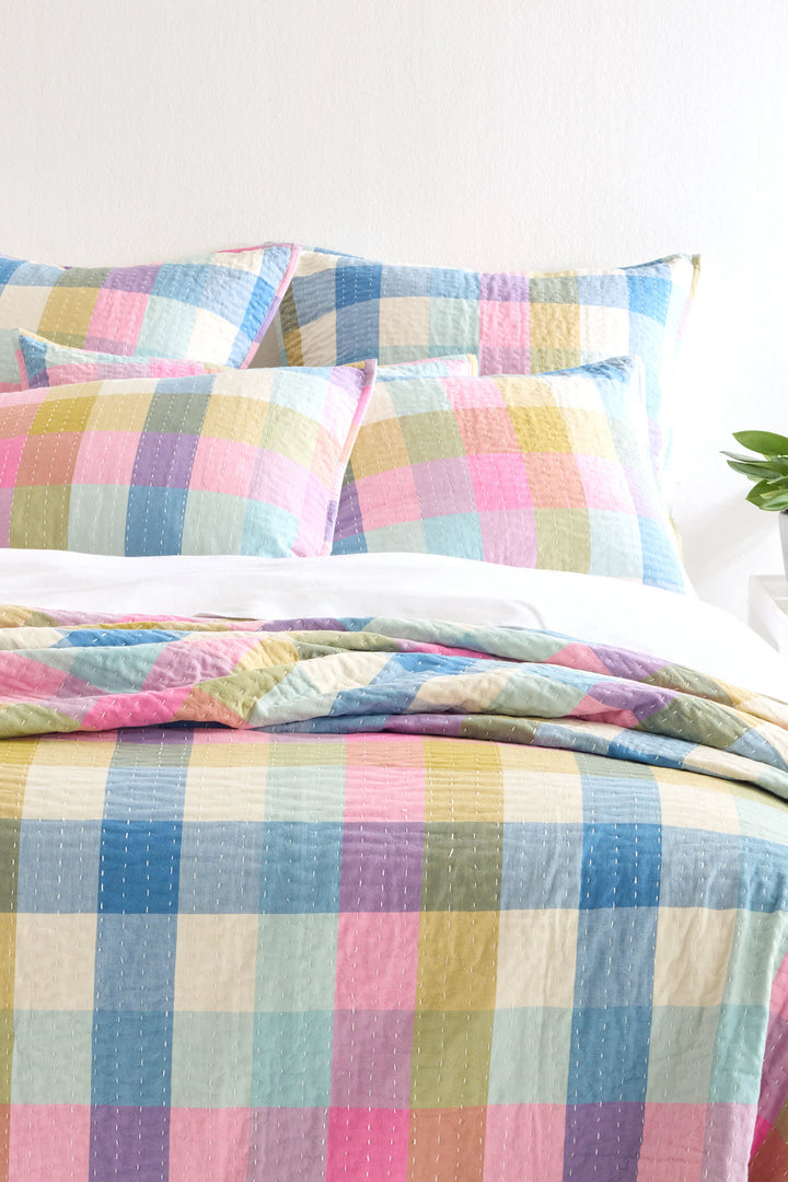 Artisan craftsmanship meets vibrant style in our Charlette Plaid Quilted Coverlet. Made of 100% soft cotton, it features hand-done kantha stitching that is truly special. With an eye-catching chambray weave and self-hem detail, this lightweight coverlet is the ultimate cozy (and colorful) upgrade. The perfect piece to liven up your space.