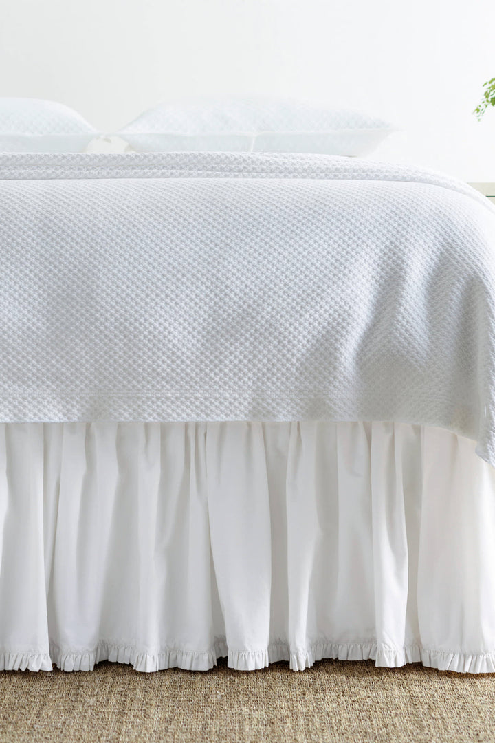 Decorative stitching at the hem adds detail to the classic elegance of our cotton bed skirt. Gathered, split corners, 18" drop.
