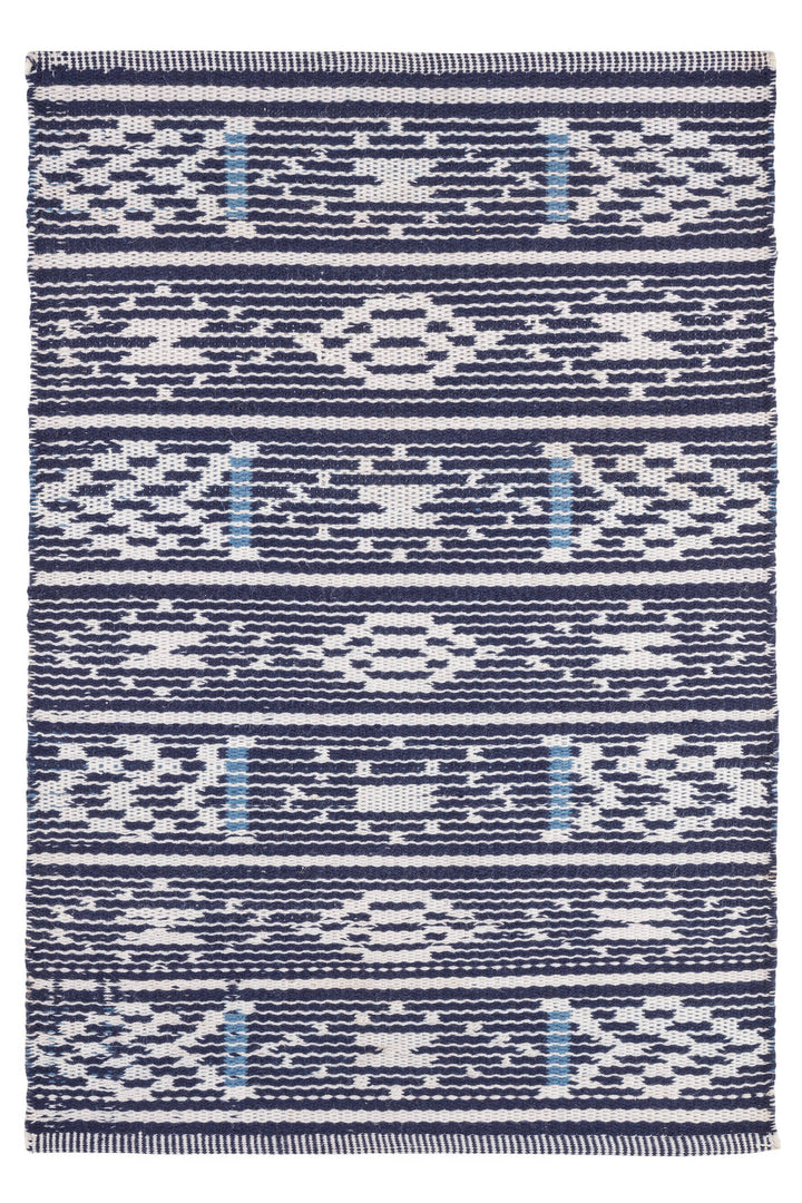 Inspired by an antique Baule indigo weaving, this indoor/outdoor jacquard woven rug is perfect for high-traffic areas. Low-profile, washable and eco-friendly, it lies flat and stays put with the look and feel of natural fiber. Handwoven in easy-care, soft-handed performance yarns that can stand up to whatever life throws its way.