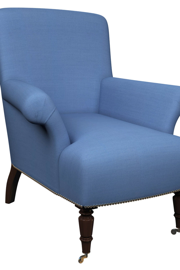 Stately and inviting. Our Barrington Chair has a higher back, tight seat, and low rolled arms, so it's ideal for living rooms, the study, anywhere you want to sit awhile in style. Finished with classic nailhead trim for a classic touch. Custom upholstered in your choice of designer fabrics. Exclusively from Annie Selke.