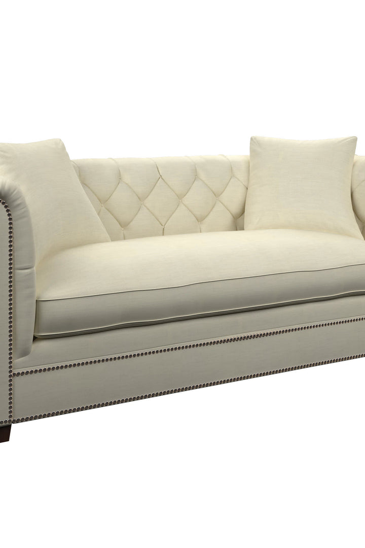 Inspired by the classic Chesterfield Sofa, our Richmond Sofa has all the time-honored details: straight back, button tufting, rolled arms, and graceful turned legs. We've added nailhead trim to punctuate the timeless silhouette. Haven cushions feature an eco-friendly soy-based foam core surrounded by down and feather fill for luxurious comfort. Custom upholstered in your choice of designer fabrics. Exclusively from Annie Selke.