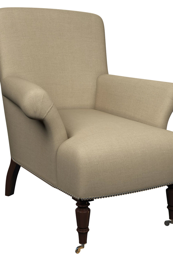 Stately and inviting. Our Barrington Chair has a higher back, tight seat, and low rolled arms, so it's ideal for living rooms, the study, anywhere you want to sit awhile in style. Finished with classic nailhead trim for a classic touch. Custom upholstered in your choice of designer fabrics. Exclusively from Annie Selke.