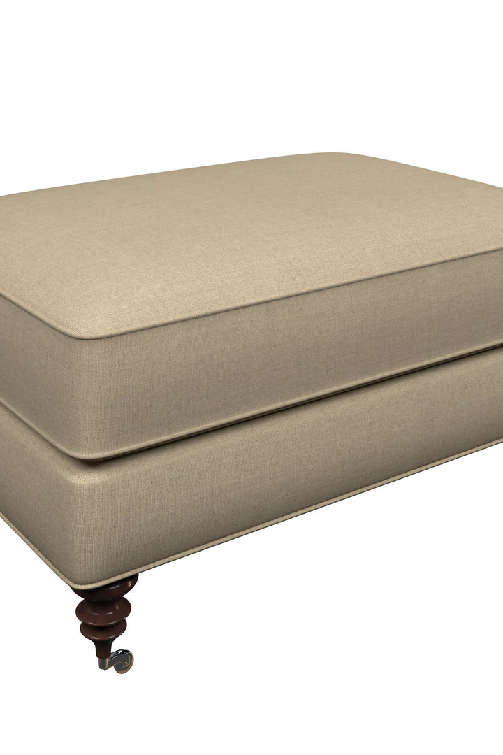 Equally at home in a wood-paneled library or a modern urban living room, our Norfolk ottoman features a wide rectangular shape, plentifully padded top and stylish turned legs. Use it as pull-up seating or add a tray and call it a coffee table. Designed to complement our Norfolk chair for a cultured, sophisticated feel. Custom upholstered in your choice of designer fabrics. Exclusively available from Annie Selke.