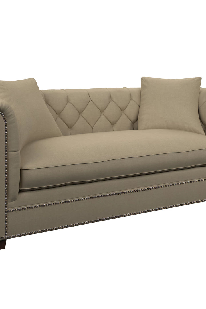 Inspired by the classic Chesterfield Sofa, our Richmond Sofa has all the time-honored details: straight back, button tufting, rolled arms, and graceful turned legs. We've added nailhead trim to punctuate the timeless silhouette. Haven cushions feature an eco-friendly soy-based foam core surrounded by down and feather fill for luxurious comfort. Custom upholstered in your choice of designer fabrics. Exclusively from Annie Selke.