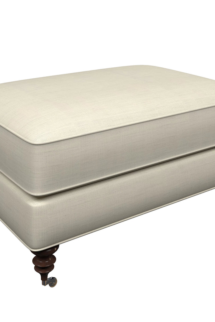 Equally at home in a wood-paneled library or a modern urban living room, our Norfolk ottoman features a wide rectangular shape, plentifully padded top and stylish turned legs. Use it as pull-up seating or add a tray and call it a coffee table. Designed to complement our Norfolk chair for a cultured, sophisticated feel. Custom upholstered in your choice of designer fabrics. Exclusively available from Annie Selke.