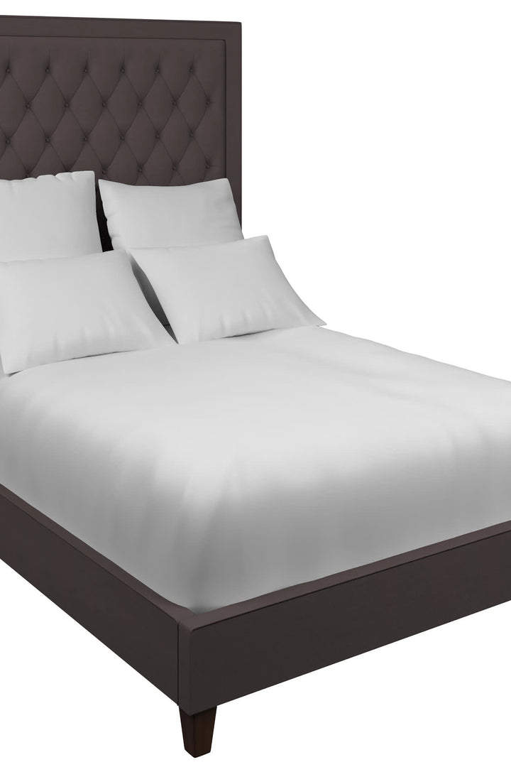 This gorgeously upholstered bed grabs the attention with its dramatic height and clean-lined, square silhouette. The addition of intricate diamond tufting with buttons adds visual interest and depth to this trusted-and-true classic. Make it your own with your choice of fabric.