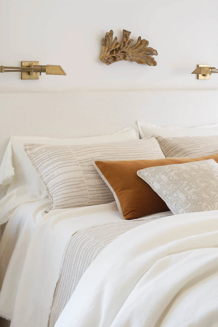Whisper-weight and naturally textured, this deliciously light and drapey sham is a technological wonder. Paired from two of our favorite fibers, naturally cool linen, and silky sustainable Tencel, a new-age breathable fiber made in harmony with nature. The resulting amalgamation is a luxurious and refined fabric that delivers an optimal climate for all seasons. Designed by Marie Flanigan, an award-winning interior designer and principal of Marie Flanigan Interiors, to reflect her signature style of timeless elegance and innovative simplicity to uncover the true beauty of home.