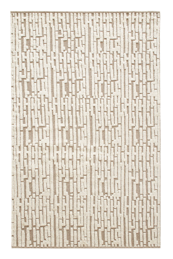 With modern and traditional elements, this sophisticated hand-knotted wool rug demonstrates unique textures inspired by nature. The luxe labyrinth is hand-knotted with lush wool to make a raised grid pattern of plushness, then hand sheared. The resulting subtle variations of pile height are only found in artisanally produced rugs. Offered in a sophisticated palette of mineral-rich neutrals, designed by Marie Flanigan, principal of Marie Flanigan Interiors, reflecting her signature style of timeless elegance and innovative simplicity.